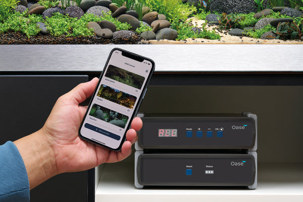 • Unsere MotionControl LEDs und StreamMax Strömungspumpen von unterwegs kontrollieren – obwohl das Aquarium kilometerweit weg ist? Der Aquarium Controller hat 5 Eingänge, an denen Sie bis zu 5 OASE Control-fähige Geräte von jedem beliebigen Ort aus ansteuern können. Mit unserem Y-Adapter, dem Power-Adapter und Zusatztransformatoren sind sogar mehr als 5 Leuchten steuerbar. Der Controller ist über WPS einfach ins Heimnetzwerk integrierbar – und per Tablet oder Smartphone leicht zu bedienen. Auch von unterwegs steuerbar durch die Registrierung in unserer freiwilligen OASE Cloud. Das modulare System des Aquarium Controllers lässt sich beliebig nach Ihren Bedürfnissen zusammenstellen und baut aufeinander auf: Für den individuellsten Komfort dieser externen Steuerung für Ihr ganz persönliches Heim-Aquarium. Mit praktischer Warnfunktion, lange bevor das ökologische Gleichgewicht des Aquariums aus den geordneten Bahnen gerät – und einer modernen, technischen Handhabung.